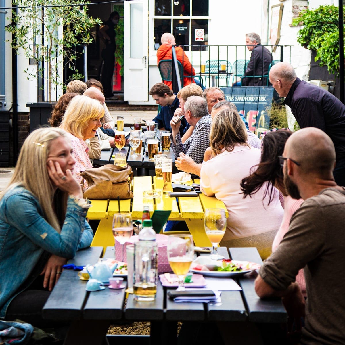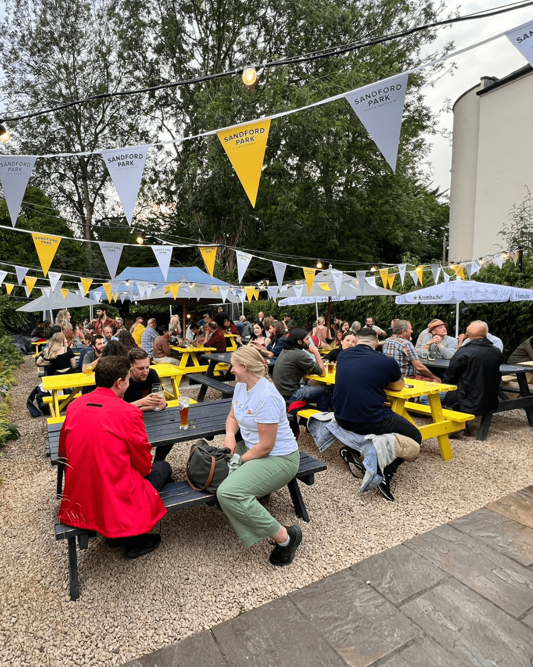 Tucked behind the bustle of the High Street, Sandford Park Alehouse opens up into one of Cheltenham’s most loved beer gardens. A leafy escape filled with character, sunshine and the hum of good conversation.
