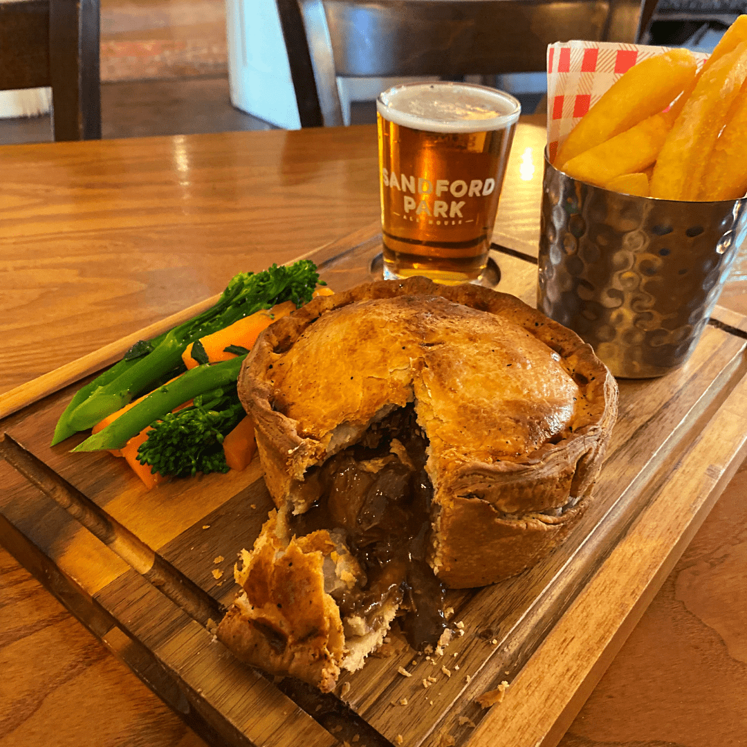 At the Sandford Park Alehouse, we take pride in crafting menus that perfectly complement our wide selection of draught and bottled beers. Our focus is on using locally sourced ingredients from trusted suppliers and traders. Whether you crave classic British pub fare, international beer-infused dishes, or a traditional Sunday roast, our diverse menu ensures there’s something for everyone’s taste buds.
